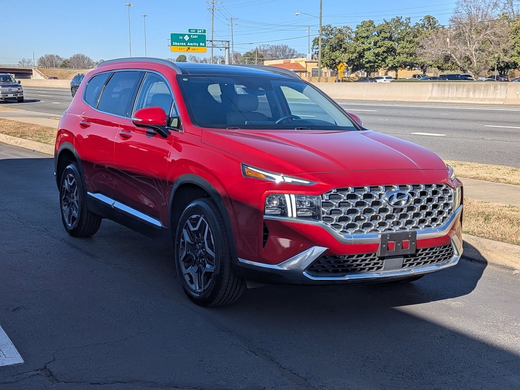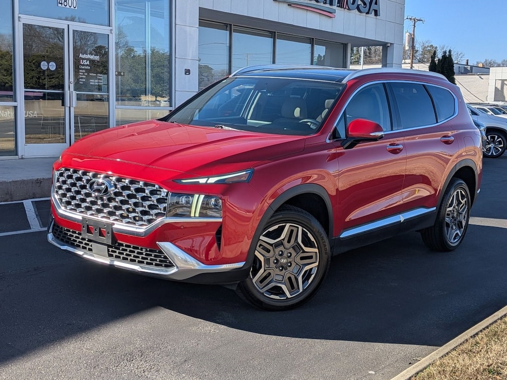 This 2023 Hyundai Santa Fe Limited is proudly offered by AutoNation USA Charlotte On almost any road condition, this Hyundai Santa Fe Limited offers solid performance, reliability, and comfort. Sophistication & understated luxury comes standard on this Hyundai Santa Fe Limited. Well-known by many, the Santa Fe has become a household name in the realm of quality and prestige.All-wheel drive means peace of mind all the time. This Calypso Red AWD Hyundai enjoys a host offeatures, including exceptional acceleration and superior stability so you can drive with confidence. One of the best things about this Hyundai Santa Fe is that it has low, low mileage. It's ready for you to truly break it in.