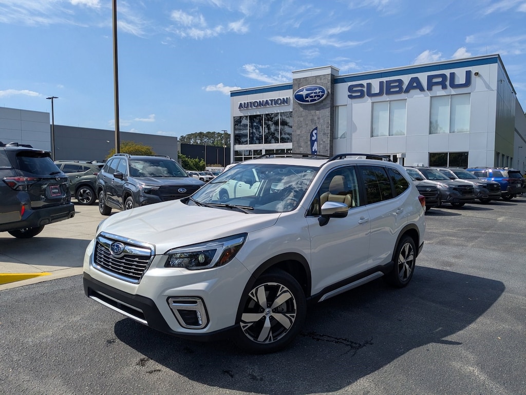 This outstanding example of a 2021 Subaru Forester Touring is offered by AutoNation Subaru Hilton Head. This SUV is a superb example of what a tough, work focused vehicle should be. Exceptional towing, acceleration and torque will help you get the job done. Stylish and fuel efficient. It's the perfect vehicle for keeping your fuel costs down and your driving enjoying up.Savor the satisfaction of safety in any condition with this AWD Subaru Forester. Superior acceleration, unmatched traction and stability as well as a luxurious interior round out the impressive features of this AWD Subaru Forester. Gently driven doesn't even begin to explain how lovingly cared for this ultra-low mileage vehicle has been.