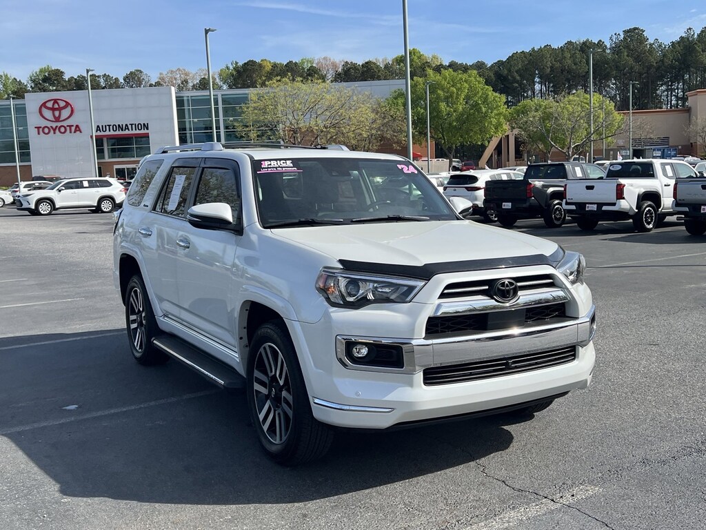 Contact AutoNation Toyota Mall of Georgia today for information on dozens of vehicles like this 2024 Toyota 4Runner Limited. This Toyota includes: BLACK/GRAPHITE, LEATHER SEAT TRIM Leather Seats *Note - For third party subscriptions or services, please contact the dealer for more information.* Why does this vehicle look so great? The CARFAX report shows it's only been owned by one owner. A rigorous inspection for safety and reliability makes this vehicle Certified Pre-Owned. Treat yourself to an SUV that surrounds you with all the comfort and conveniences of a luxury sedan. Is it possible to fall in love with a vehicle? It is when your vehicle is as prestige as the Toyota 4Runner. With 4WD, you can take this 2024 Toyota 4Runner Limited to places roads don't go. It's all about the adventure and getting the most enjoyment out of your new ride. A Toyota with as few miles as this one is a rare find. This 4Runner Limited was gently driven and it shows. Added comfort with contemporary style is the leather interior to heighten the quality and craftsmanship for the Toyota 4Runner Limited. The interior of this Toyota 4Runner Limited has been through meticulous inspection and could almost pass for a brand new vehicle.